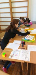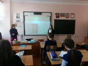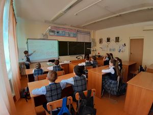 В школе нашу группу встретили очень тепло, организовали экскурсию по школе Ребята с интересом посетили кабинеты английского, французского языков.