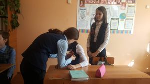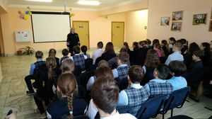 Инспектор по пропаганде безопасности дорожного движения, старший лейтенант Аксенова Н.М. выступила перед учащимися всей школы. Она рассказала ребятам о пешеходных переходах, т.к. школа расположена рядом с проезжей частью, о правилах поведения на дороге, а также важности использования светоотражающих элементов.