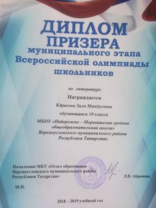 С 16 – по 19 января в Республиканском олимпиадном центре Министерства образования и науки РТ прошел заключительный этап республиканского и регионального этапа Всероссийской олимпиады школьников по истории. Олимпиада проходила в два тура, в первом туре учащиеся решали тестовые задания, во втором - составляли исторический проект и писали эссе по выбранным темам. Задания были сложные, интересные в решениях. Было над чем подумать. Честь нашего района на олимпиаде защищала ученица 9 класса МБОУ «Набережно-Морквашская СОШ» Семенова Софья. В стены родной школы она вернулась со свидетельством об участии в региональном этапе Всероссийской олимпиады школьников.