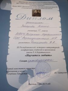 Обучающиеся 7-8 классов МБОУ «Набережно-Морквашская СОШ» Замешина Ирина и Минов Ярослав с 14 по 15 декабря 2019 г. участвовали на l Республиканском Лингвистическом турнире «Планета Языков» по английскому языку. Турнир проходил на базе оздоровительно-образовательного комплекса «Дуслык» в ГАОУ «Республиканский олимпиадный центр» МО и НРТ. Работа ребят включала: выполнение индивидуального задания (письменная работа: объявление, реклам, приглашение, письмо), парная работа (озвучивание просмотренного видеосюжета), командный тур (защита проекта). Минов Ярослав в данном турнире получил диплом 3 степени. Поздравляем победителя и желаем дальнейших успехов и побед!!!