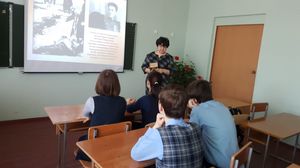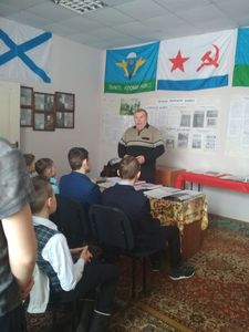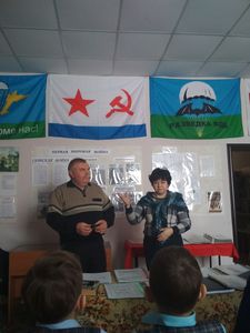 Сергей Александрович Плеханов, председатель районного общества воинов-интернационалистов, рассказал ребятам о годах службы в Афганистане. Содержательный рассказ о знаменитом 781 отдельном разведывательном батальоне так увлек ребят, что слушали с большим вниманием. Годы службы, где наши ребята выполняли свой интернациональный долг, это и годы дружбы, которую они сохраняют уже тридцать лет, всегда помогая друг другу, не забывая и членов семей погибших товарищей. Сергей Александрович рассказал о воинах-интернационалистах нашего поселения – это Михаил Никифоров, Уткин Александр, Борисов Николай, Петров Николай, Билалов Дамир, Щитковский Олег. Свой рассказ он продолжил у фотографий своих ребят со всего района, почти о каждом мы услышали теплые слова и гордость.