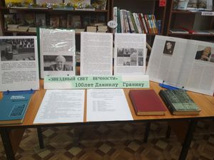 В январе 2019 года в Набережно-Морквашской библиотеке работает выставка-юбилей «Звездный путь вечности» к 100-летию Даниила Гранина.