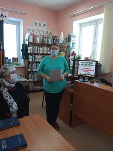 В начале встречи библиотекарь Лилия Садеева с помощью презентации познакомила собравшихся с татарскими писателями – участниками Великой Отечественной войны.