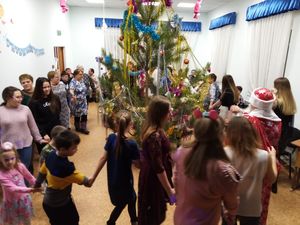 Ну и по доброй традиции, какой же новый год без хороводных песен? Все дружно становились в хоровод, пели и танцевали. Ну и после торжественной части все с нетерпением ждали новогоднюю беспроигрышную лотерею.