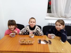 Затем все дружно пили горячий чай с угощениями в клубе. Ребята получили заряд бодрости и хорошего настроения.