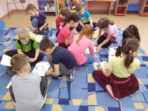 Каролина учится во втором классе и для того, чтобы улучшить технику чтения, читает не только книги, но и журналы. В этот день семья Горбуновых познакомилась с ассортиментом детских журналов библиотеки и выбрала несколько номеров для домашнего чтения.