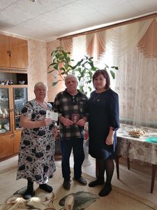 В преддверии Нового года юнармейцы нашей школы во главе с директором Панасиком Н.В. от партии «Единая Россия» вручили сотовый телефон ветерану Великой Отечественной войны Лабутову Николаю Михайловичу. Это единственный ветеран, проживающий на территории нашего поселения. Хочется пожелать ему крепкого здоровья и мирного неба над головой. Спасибо Вам за Победу, Николай Михайлович!