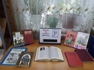 К юбилею писателя Русско-Макуловская библиотека организовала для читателей книжную выкладку «Больше, чем юморист». Здесь представлены самые знаменитые и популярные произведения писателя - «Приключения Тома Сойера», «Приключения Гекльберри Финна», «Таинственный незнакомец», «Простофиля Вильсон», «Янки при дворе короля Артура» , «Соединенные линчующие штаты .