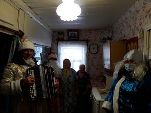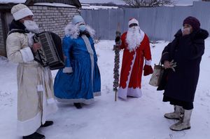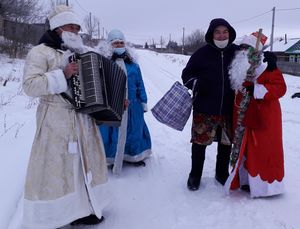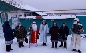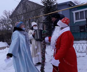 Работники Кильдеевского сельского Дома культуры, приняли участие во Всероссийской акции "Праздник в каждом дворе", и 24 декабря в прекрасный тихий зимний день, поздравили с наступающими праздниками Новым годом и Рождеством, жителей малой деревни Федяево. Сколько радости, удивления было на лицах людей, в чьи дома входили Деды Морозы и Снегурочки. Как им хотелось поближе рассмотреть пришедших гостей и увидеть в них знакомые лица. Новый Год – самый светлый, самый волшебный и самый любимый праздник в году. Этот праздник занимает особое место в жизни каждого из нас. Несмотря на зимнюю погоду это по-настоящему теплый праздник! Он согревает теплом душевного общения с близкими людьми, дарит добрые надежды. Хозяева домов, куда заходили желанные гости, давно не слышали звуки гармони, и поэтому весело пели традиционные новогодние песни, а Михаил Кириллович Рачков, рассказал Деду Морозу стих про зиму. Уходя, от всей души поздравляли с самым добрым, любимым и светлым праздником - Новым годом! Пожелали крепкого здоровья, взаимопонимания с родными и близкими, достатка, благополучия, уверенности в завтрашнем дне и исполнения желаний! Пусть больше будет в наступающем году, радостных встреч, ярких и запоминающихся событий и открытий.
