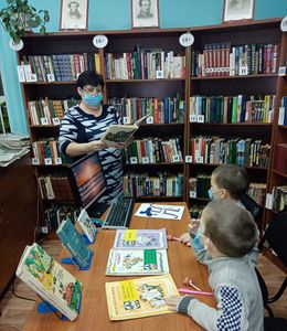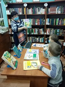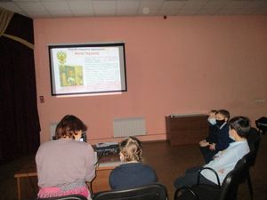 Посмотрев презентацию «Зимние забавы и безопасность», дети вместе с библиотекарем обсудили, как нужно вести себя во время игр в снежки, катания на горке, катке и лыжах, какую одежду нужно одевать для прогулки.