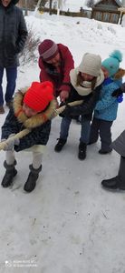 Занимательные игры и конкурсы продолжились и после ухода сказочных персонажей: «Бабки - Ежки» «покатали» детей на метле, дети соревновались в командных эстафетах «Перенеси снежинку», «собери овечек»», изображали «Снежинку», которая разлеталась при команде «Ветер!». С азартом участвовали в конкурсах «Самый ловкий», «Примерзни», «Нарисуй елку», «Кенгуру» и др. А еще детишек ожидал сюрприз: срезать с завязанными глазами сладкие призы, подвешенные на веревку! Было много радости и счастливого смеха ! Праздничное мероприятие завершилось веселыми танцами.