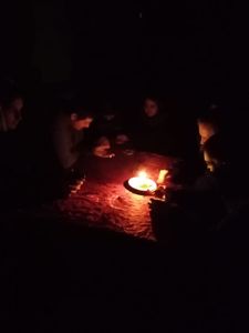 Дед Мороз со Снегурочкой пришли поздравить всех с новым годом и пожелать счастья, удачи и исполнения желаний в наступающем году. Нашлись и желающие рассказать Деду Морозу стихи, показать танцы. Снегурочка загадывала загадки, а Дедушка Мороз угощал сладкими гостинцами из своего мешка. Затем Снегурочка провела с гостями зажигательный танцевальный батл. Разделившись на две команды, капитанами которых стали Дед Мороз и Снегурочка, снова играли в веселые и подвижные игры, такие как «Расшифровка», «Перетанцуй меня», «Донеси снежинку», «перепрыгни в новый год» и другие. Вспомнили новогодние песни с подсказкой из «шляпы», пели их в хороводе. Было очень весело, хотя и холодноватый выдался вечер, с хорошим настроением гости разошлись по домам.