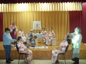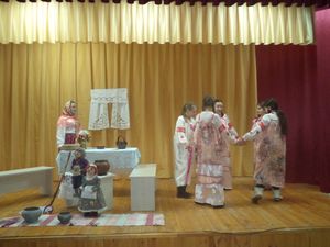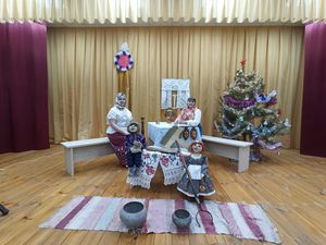 В Доме культуры красовалась новогодняя елка, царила волшебная, праздничная атмосфера. На некоторое время сцена сельского Дома культуры превратилась в воображаемую русскую избу, где Хозяюшки принимали желанных гостей. Все окунулись в волшебство праздника и попробовали представить, как отмечали на Руси Васильев вечер или Старый новый год.