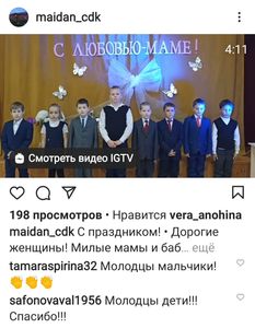 28 ноября сотрудники Майданского сельского Дома культуры в социальной сети instagram разместили поздравительные видеоролики, посвященные Дню матери.