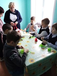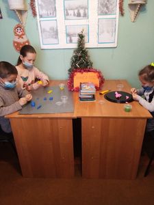В завершение мероприятия был проведён обзор книжной выкладки «Книга под ёлкой», после чего ребята сделали из пластилина разных зверушек: мышку, котика и собачку.