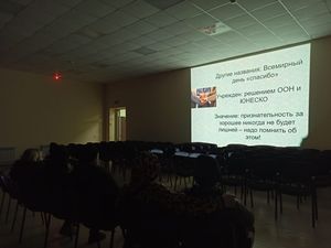 Мероприятие сопровождалось показом презентации, при просмотре которой присутствующие познакомились с традициями в разных странах мира, узнали, как звучит «Спасибо!» на разных языках планеты Земля, а также зачитали самые распространенные русские поговорки.