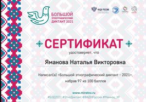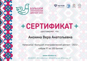 Каждый участник диктанта получил сертификат с результатом прохождения теста.