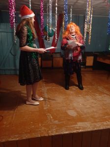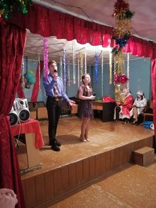 Организатор вечеринки, заведующая СДК Татьяна Назарова, предложила присутствующим продемонстрировать свои знания и умения в различных Новогодних играх, викторинах и конкурсах. Они состязались в таких заданиях, как: "Песенные перевертыши", "Правда или ложь"," Рулетка поздравлений и пожеланий", "Письмо Деду Морозу", "Новогодний крокодил", кроссворд "Зимняя сказка", "Кино-шифры", а также - "Лучший танцор".
