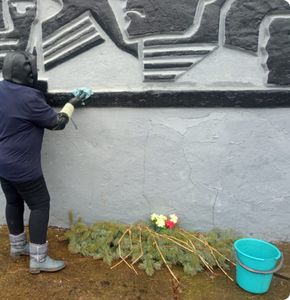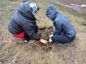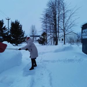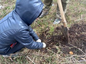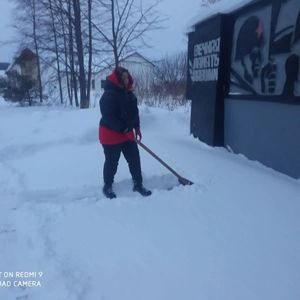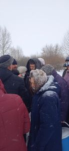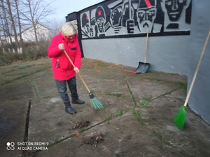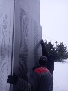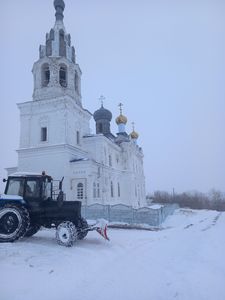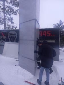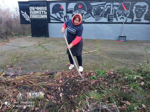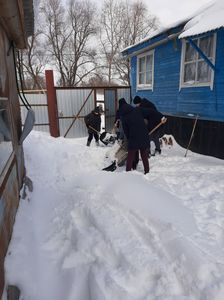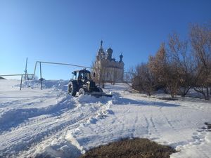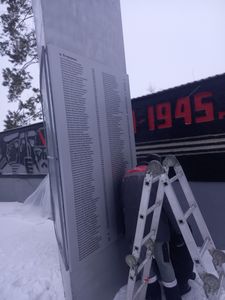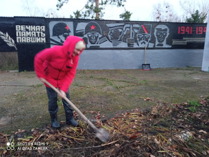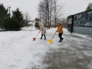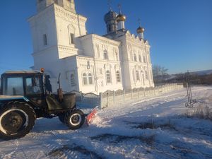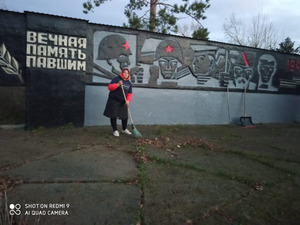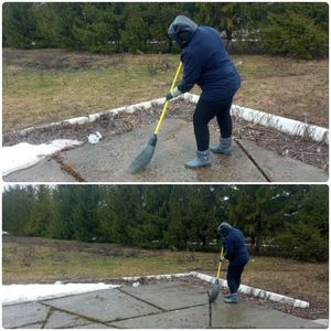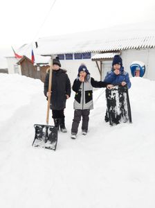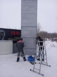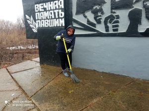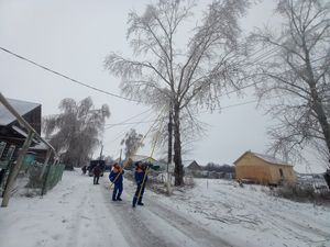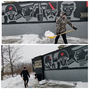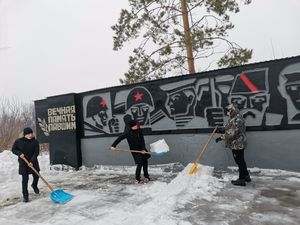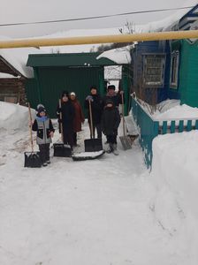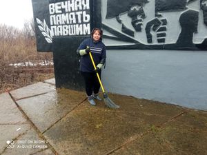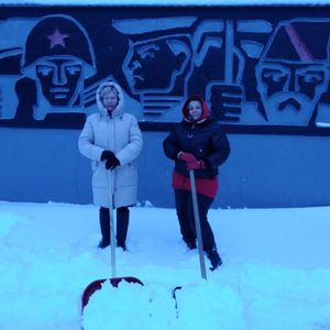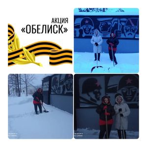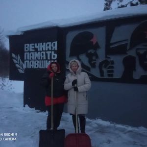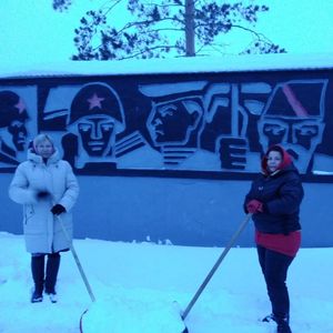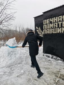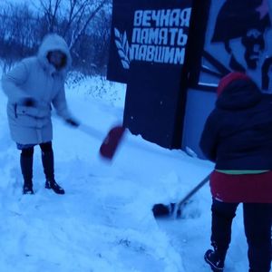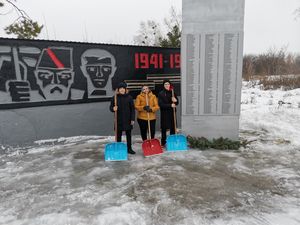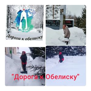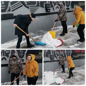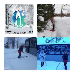 Участники трудового патриотического десанта расчистили от снега тропинку к памятнику и его асфальтированную часть.