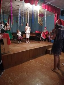 Все вместе взрослые и дети встретили Деда Мороза и внучку Снегурочку, которые подарили всем разные сладости и подарки .Дети и взрослые с большим настроением читали стихи, пели песни и танцевали. Сказочные персонажи до конца праздника веселили гостей разными танцами, песнями, шутками и конкурсами. Розыграли новогоднюю беспроигрышную лотерею.