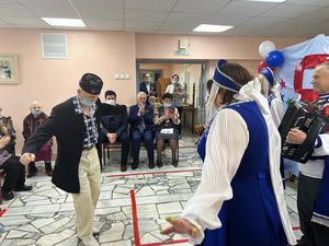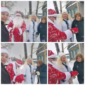 Перевоплотившись в сказочных героев, участники поздравительной акции пожелали всем мира, добра, благополучия, крепкого здоровья и оптимизма и вручили небольшие подарки.