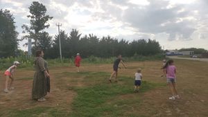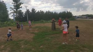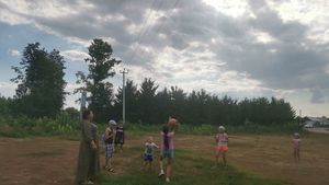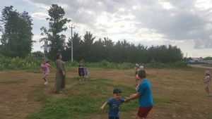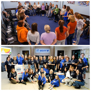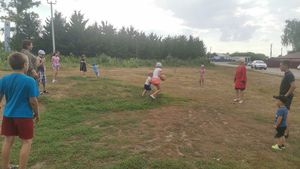 Разделившись на две команды, участники с удовольствием приступили выполнять весёлые задания.