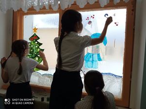 ❄️❄️В преддверии Новогодних праздников для младших школьников в школе была организована зарисовка Новогодних композиций на окнах.