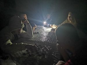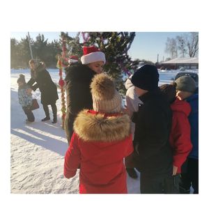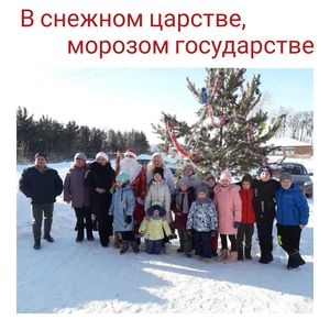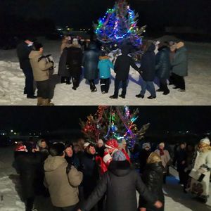 Сотрудники Дома культуры и библиотеки, Татьяна Назарова и Любовь Грачева, а также родитель и активный участник мероприятий - Александр Алексеев, встретили детей и их родителей возле Коргузинского СДК и библиотеки у Новогодней Елочки.