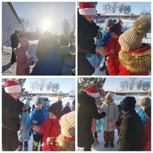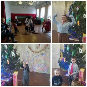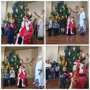 С появлением Деда Мороза и Снегурочки начался настоящий праздник с песнями и танцами, хороводами вокруг ёлки. После представления все дети получили долгожданные подарки от Деда Мороза. Дети зарядились праздничным настроением и ощущением волшебства.
