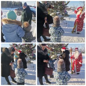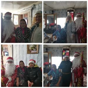 Заведующие СДК и библиотекой, Татьяна Назарова и Любовь Грачева, вместе с активным участником клубных мероприятий, Александром Алексеевым, поздравили с Новым годом и Рождеством особенных людей, в том числе инвалидов детства, и одиноких пожилых.