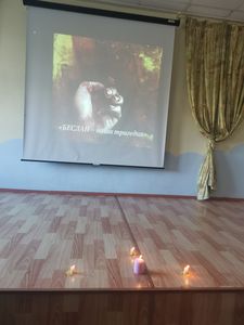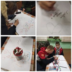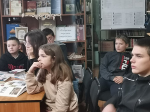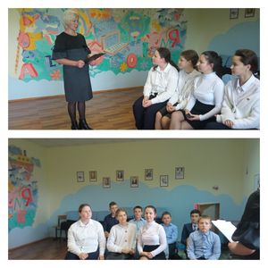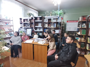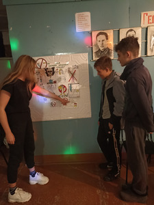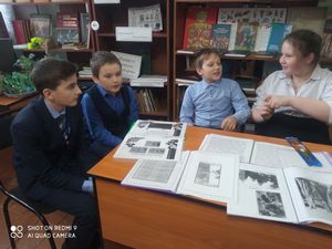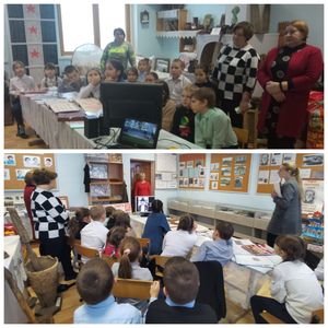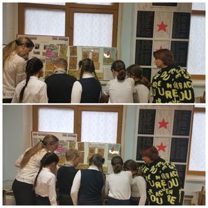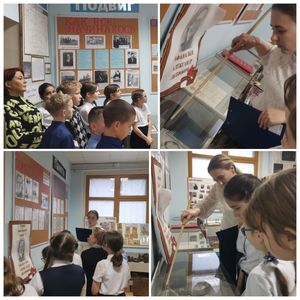 Прежде чем приступить к изготовлению памятных цветов, которые должны возлагаться к памятнику воинам Великой Отечественной войны, ребята были приглашены в музей, где им было рассказано о том, что такое героизм и о Героях-земляках. Также о них ребята посмотрели электронную презентацию.