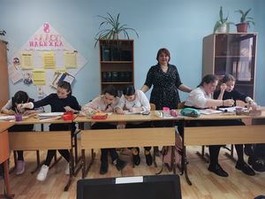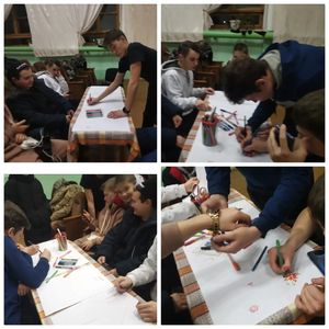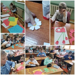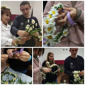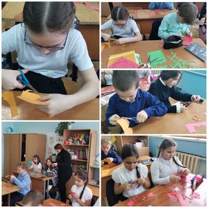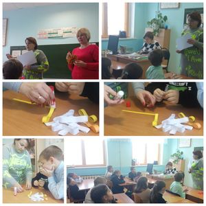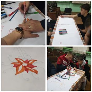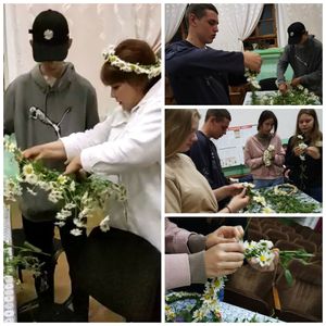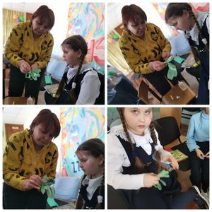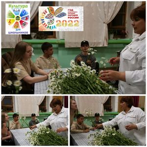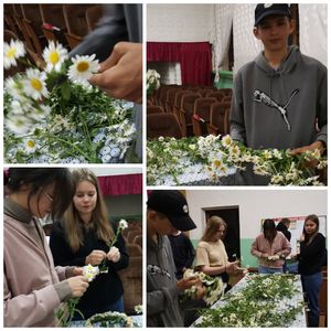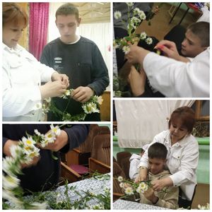 Далее перешли к творческой части. Участникам раздали всё необходимое и все вместе приступили к изготовлению букета цветов.