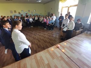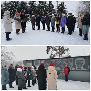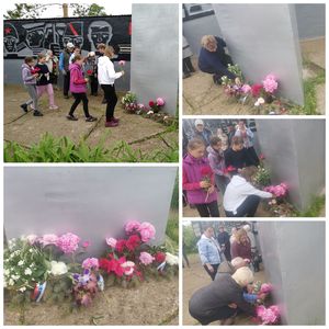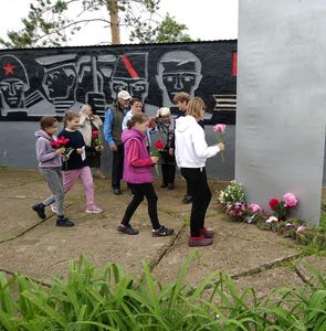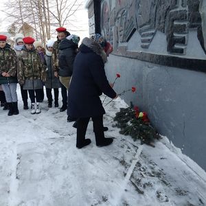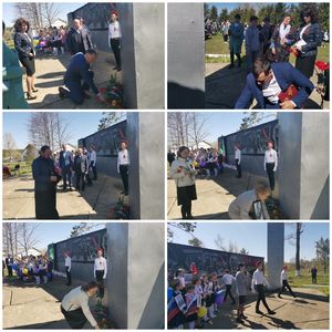 В знак благодарности павшим воинам-героям, укрепления исторической памяти, к стеле были возложены цветы и гирлянда, которые изготовили своими руками школьники в канун праздника.