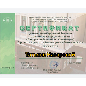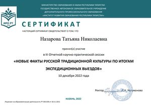 В минувшую субботу, 10 декабря, заведующая Коргузинским сельским Домом культуры, Татьяна Назарова, в составе делегации клубных работников Верхнеуслонского муниципального района приняла участие в III Отчетной научно-практической сессии "Новые факты русской традиционной культуры по итогам экпедиционных выездов", которая состоялась в Культурном Центре им. А. С. Пушкина г. Казани.