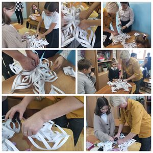 с народными Новогодними традициями и провели мастер-класс по изготовлению объёмных снежинок из бумаги.