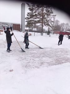 После продолжительных зимних каникул, 13 января учащиеся Кураловской школы, приняли участие в акции по очистке от снега территории парка.