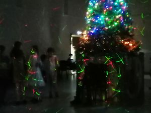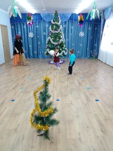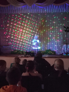 Разноцветные, сверкающие гирлянды и ярко украшенная ёлочка принесли детям ощущение чуда. С самого начала представления сказочные герои увлекали детей в волшебный мир сказки. Дети окунулись в праздничную атмосферу приключений, поучаствовали в интересных конкурсах. С появлением Деда Мороза начался настоящий праздник с песнями и танцами, хороводами вокруг ёлки.