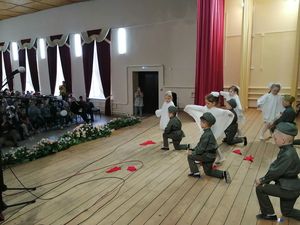 Затем в актовом зале гостям была представлена театрализованная постановка «Мы будем помнить, мы не забудем!» (постановщик Пономаренко Е.Н.), танец «Россия» (хореограф Филатов Д.А.)