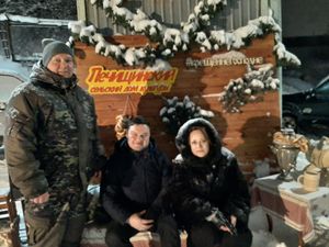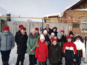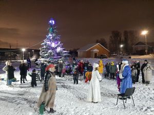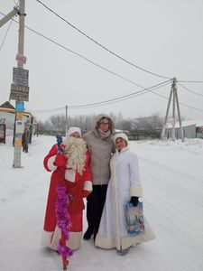 Жители села, которые встречались на улице, с большим удовольствием рассказывали стихи и пели песенки, загадывали желания, держась за сказочный посох Деда Мороза.
