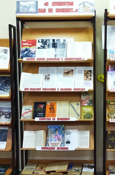 К 80-летию прорыва блокады Ленинграда в Набережно-Морквашской библиотеке работает книжная выставка, у которой 26 января с учениками средних классов прошла образовательная викторина «И мужество нас не покинет…», посвященная памятникам мужества жителей и солдат.