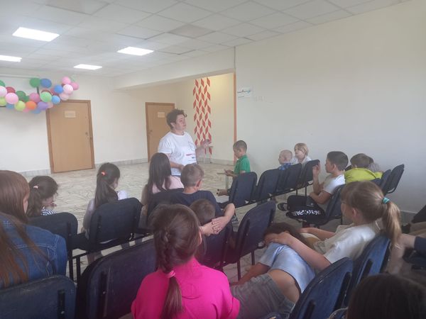 Детям были представлены книги поэта «Негде яблоку упасть!» и «О дырках в зонтике и других важных вещах». Они познакомились с веселым волшебным миром, где зонтик должен быть дырявым, где живут добрые колдуны и привидения, где в дружбе живут мальчишки и девчонки, рыцари и принцессы, разные звери и люди.