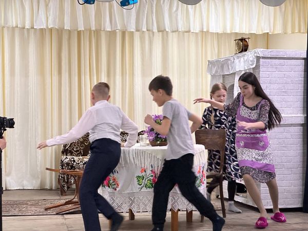 Полный зал счастливых мам и бабушек с удовольствием принимал артистов. Театральная постановка имела свою изюминку, видно было, как стараются артисты порадовать своих мам, бабушек и всех жителей села.