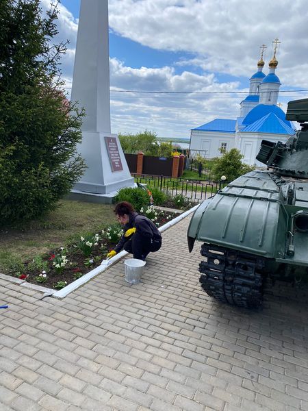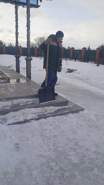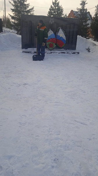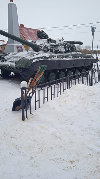 Выполнена уборка территория памятника с.Введенская Слобода от снега. Также танк, расположенный на территории памятника, очищен от снега.