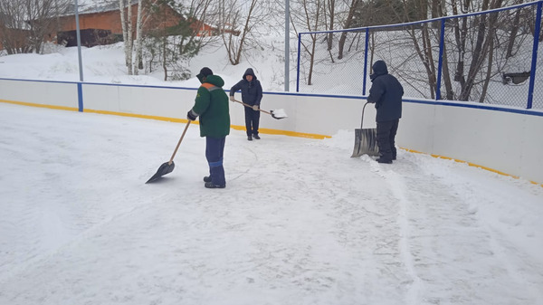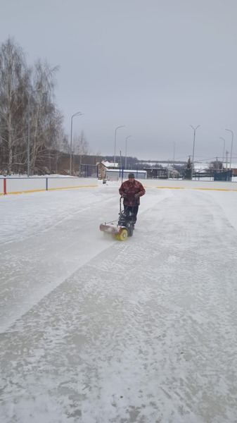 На территории ледовой площадки в с.Введенская Слобода выполнена расчистка снега. Площадка подготовлена к повторной заливке.
