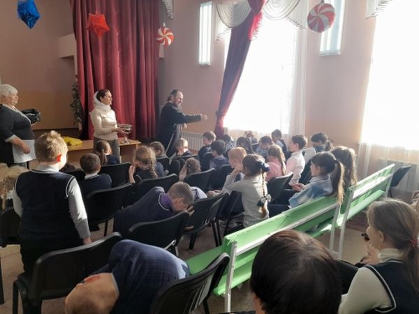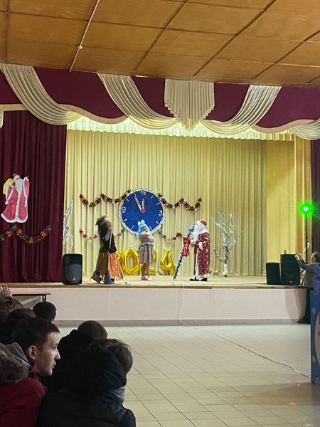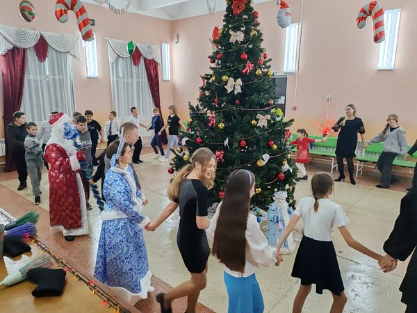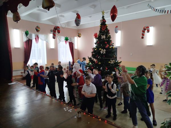 В актовом зале школы состоялось сказочное представление для обучающихся начальных классов. Ребята с огромной радостью встретили самых долгожданных гостей на празднике – Деда Мороза и Снегурочку, Бабу-Ягу и Кикимору. Они разыграли настоящее представление для ребят с конкурсами, песнями и танцами. Счастливые ребята окунулись в праздничную атмосферу новогодних приключений. С появлением Деда Мороза начался волшебный праздник с дружными хороводами вокруг красавицы-ёлки. Перед Снегурочкой и Дедом Морозом выстроились большие очереди, каждый хотел порадовать гостей стихами.
