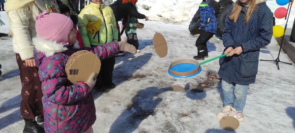 Во время прогулки воспитанники старшей группы МБДОУ «Кураловский детский сад» играют, много двигаются. Выходя на улицу, ребята наблюдают за птицами, деревьями, небом, учатся определять состояние погоды, вместе с воспитателем Юлией Лужаевой проводят различные опыты со снегом. А сколько радости доставляет детворе катание с горки, игры со снегом, сооружение снежных построек.
