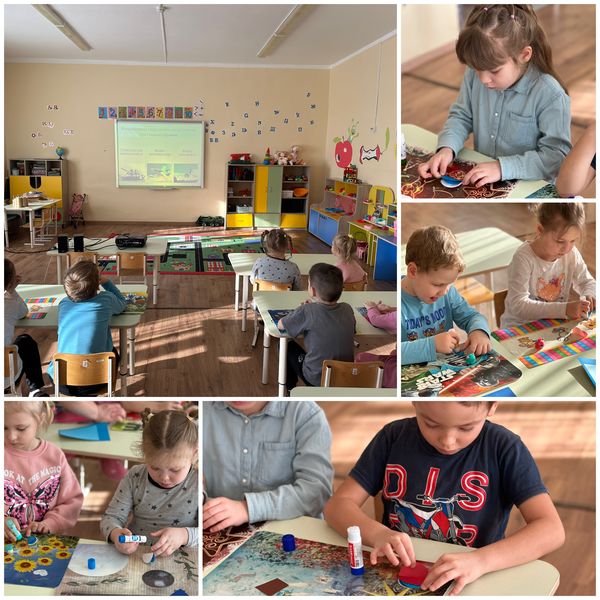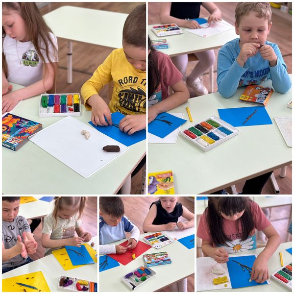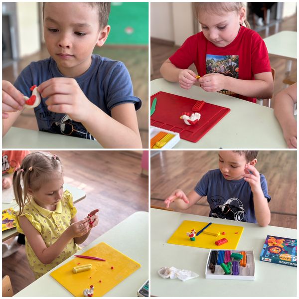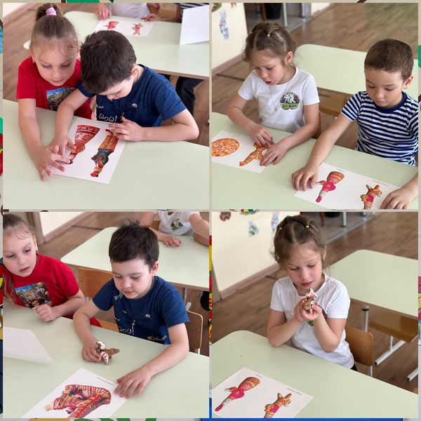 По окончании викторины ребята выполнили творческую работу в смешанной технике (аппликация и «вымазывание» пластилином) «Волшебный козлик». Работы получились яркими и индивидуальными. Вот такое замечательное и очень познавательное путешествие совершили сегодня наши дети, где познакомились с П.П.Бажовым и его творчеством.