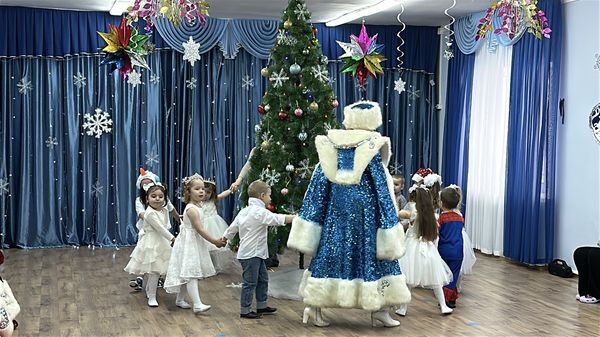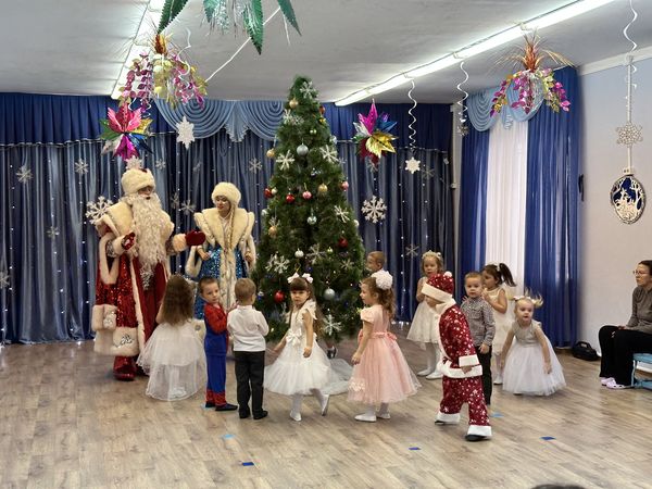В ясный зимний день, когда солнечные лучи пробивались сквозь снежные облака, в МБДОУ «Кураловский детский сад» начался настоящий праздник для самых маленьких воспитанников. Малыши, наряженные в яркие костюмы, собрались вокруг ёлки, сверкающей игрушками и гирляндами. Зал наполнился радостным смехом и улыбками. В гости к ребятам пришли Дед Мороз и Снегурочка, облачённые в наряды, искрящиеся блеском. Дети с восторгом встретили своих волшебных гостей, радостно взмахивая ручками. Под мелодии задорных песен они кружились, словно снежинки, уносясь в мир чудес и веселья.