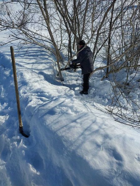 На территории Майданского МФЦ в данный момент проводится бурение ямок под восстановление порубочного материала