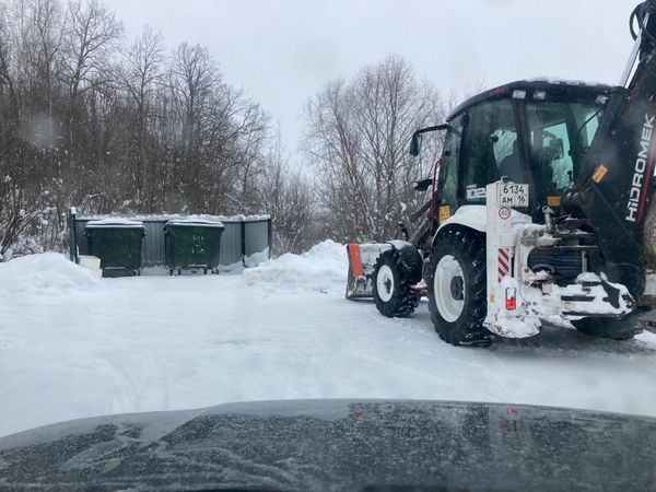 На минувшей неделе с помощью тракторной техники была произведена очистка контейнерных площадок и подъездных путей к ним от снега.